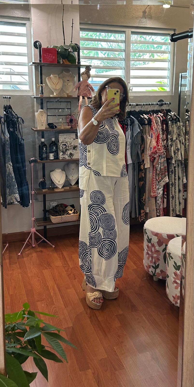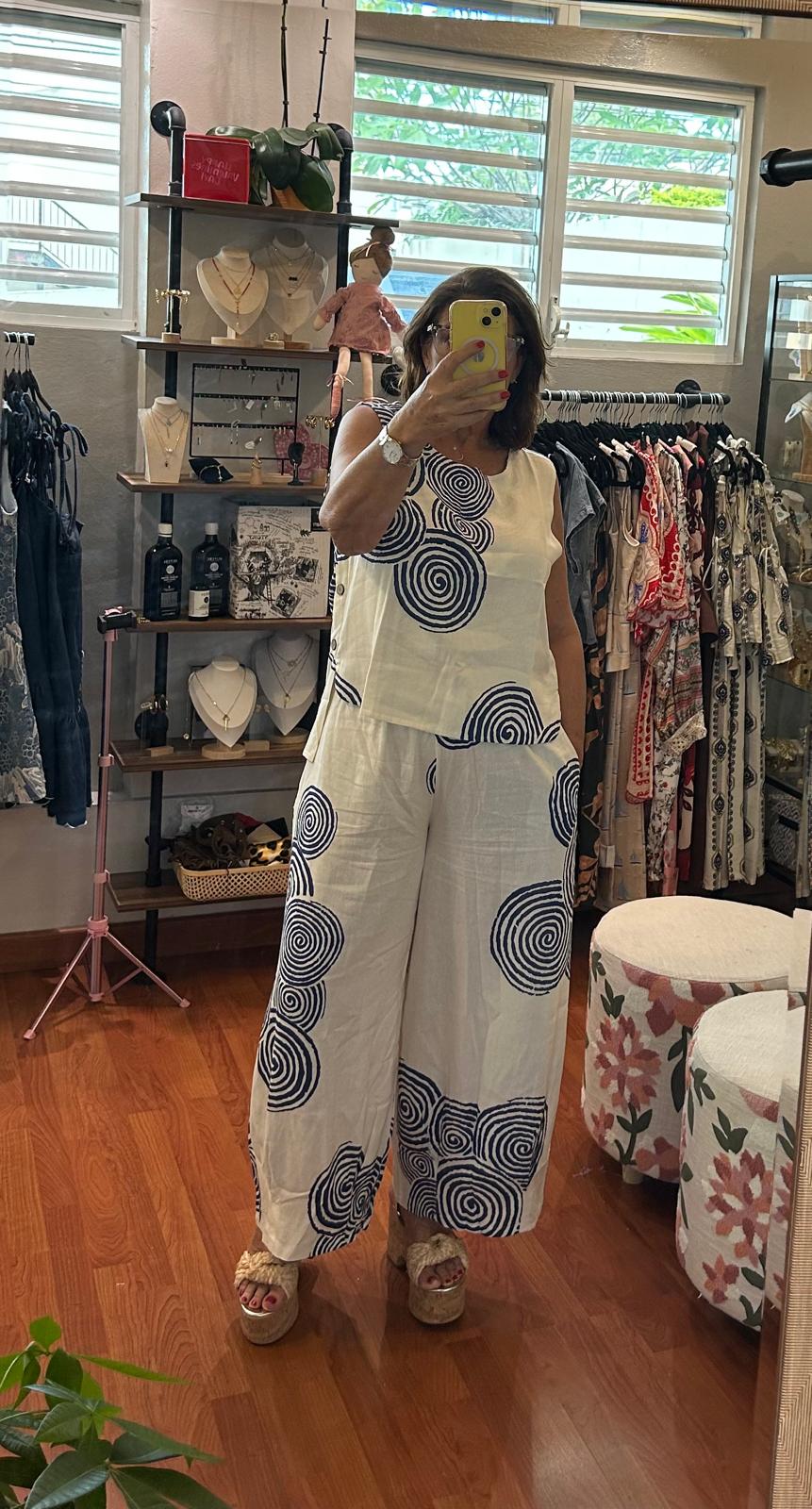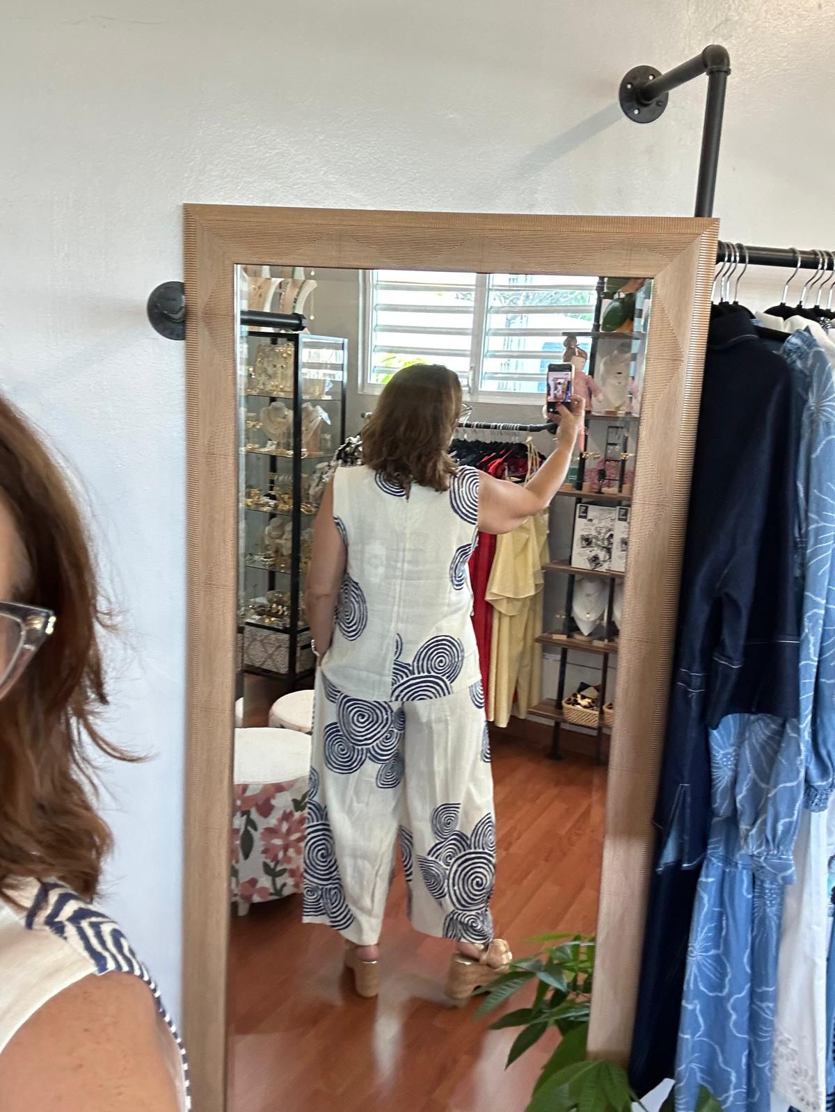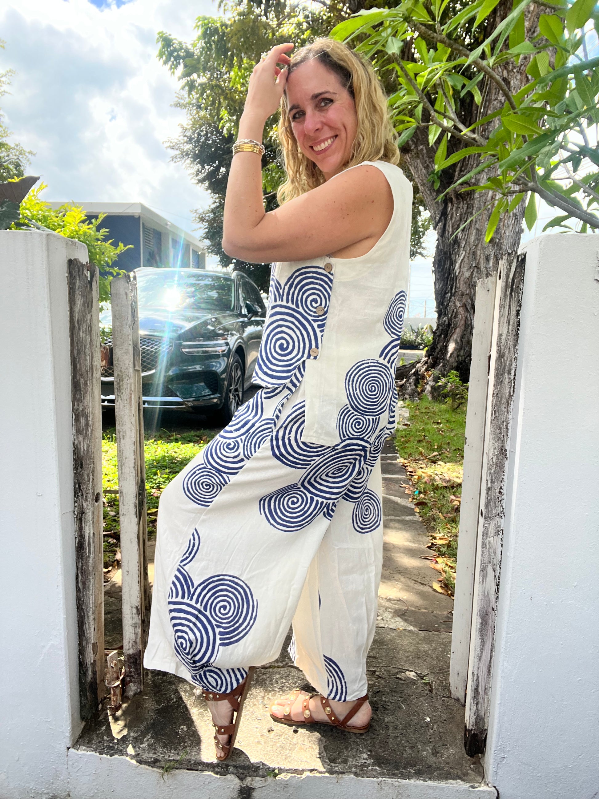 Cream side button cotton square fitted top. Ines is wearing a Medium/Large.