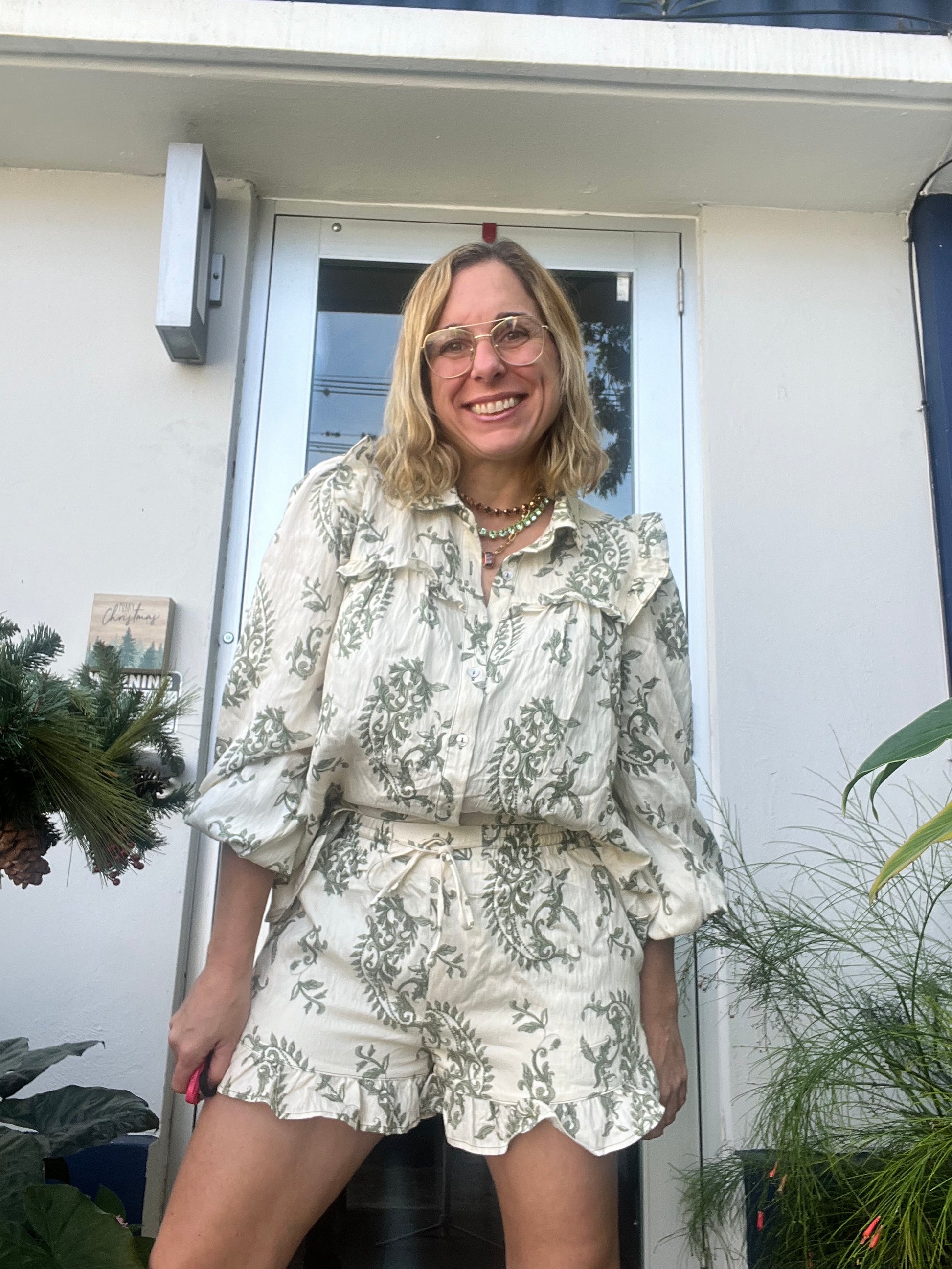 Floral printed woven babydoll blouse & shorts set